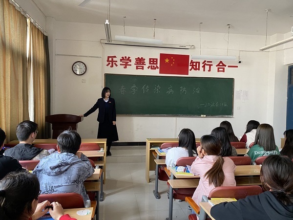 辅导员开展主题班会 随后,系列活动以主题班会、专题讲座等形式有序开展。3月22日至26日,学院组织学生进行“郑财2021春季传染病防治知识线上答题”;3月23日,组织学生在图书馆报告厅参加惠济区疾病预防控制中心慢病科科长冯春明的讲座活动;3月22日至26日,各班辅导员围绕活动主题,根据班级实际情况开展多种形式的班会活动。各班通过播放视频、观看图片以及分析案例等方式,向同学们介绍了防治肺结核等传染病的相关知识。