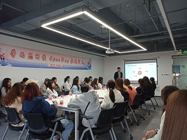 参观现场 活动中,学生们有序参观了公司的办公室、休息区、文化墙等,直观了解了公司的工作环境和企业文化。接着,双方在公司会议室进行了座谈,郑财校招负责人李乐生动介绍了在线教育行业的历史和现状、好未来教育集团以及学而思网校的基本情况、初中英语网课教师的岗位要求等;郑州区域校企负责人黄禹铭就学生们有关薪资待遇、实习安排、工作时长、面试要求等问题一一作出解答;座谈会最后,黄禹铭老师组织学生们加入了实习班级“当康班”,并就班级今后的任务进行了规划讲解,经过自愿竞选,两个实习班级各选出2名组长,组长将负责后期班级的作业收集、联络通讯等工作。整场座谈交流中,学而思网校负责人热情洋溢,学生们也互动积极。 本次活动使学生们了解了在线教育行业的工作现状,提供了实习提升的平台,促进了校企双方多层次多领域的合作,为下一步的交流奠定了良好基础。 |