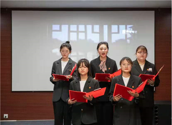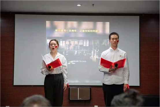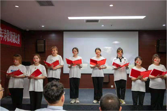 第四组带来的《党的赞歌》为我们讲述了中国共产党一代又一代的人顽强拼搏不懈奋斗的光辉历程,让在座的观众通过激昂的语调和真挚的情感深切体会到革命烈士顽强奋斗的先进模范精神。