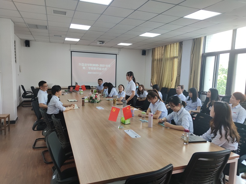 为了加强与一线教师沟通和交流,更好做好外语教育教学工作和外语教师职业发展规划,外国语学院于5月11日下午在D座办公楼5楼会议室召开了教师座谈会。座谈会由副院长黄雪娟主持,党总支书记闫静、各教研室主任以及部分教师代表共30人参加了此次座谈会。