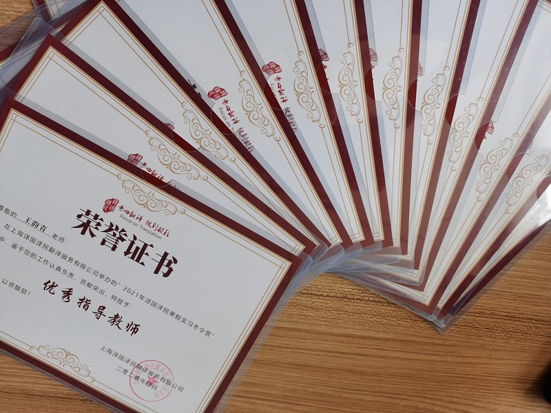 外国语学院共有548名学生参与此次线上实习项目,经过为期一个月的在线实习,其中377名学生获得该公司颁发的实习证明,司怡萌、陈正、郑源等23位同学因表现优秀,被评为“优秀实习生”,学院18位老师被评为优秀指导教师。同时,外国语学院获得该公司授予的“2021年度校企合作模范院校”牌匾。