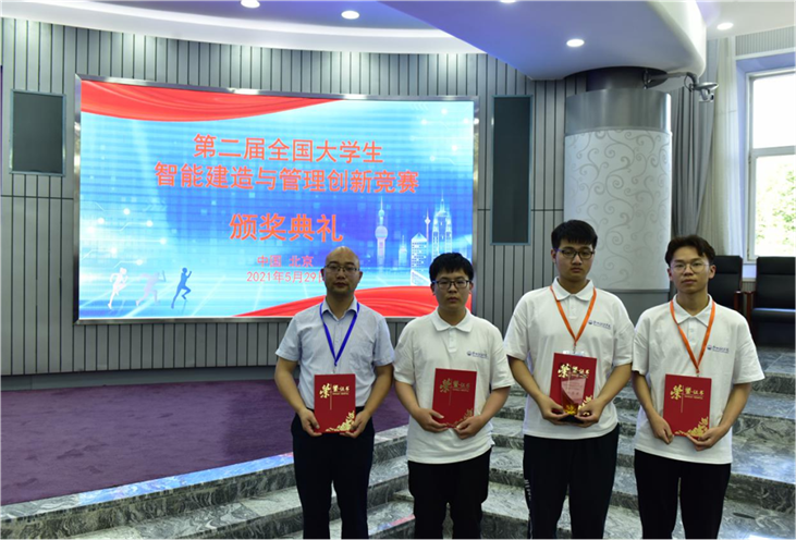 2021年5月29日,土木工工程学院党总支书记焦建伟、BIM技术研究中心主任童振龙带领2019级工程造价本科专业岳佳明、赵建星、汪兴望赴北方工业大学参加第二届全国大学生智能建造与管理创新B赛道决赛,经过激烈角逐,最终喜获团体“一等奖”。