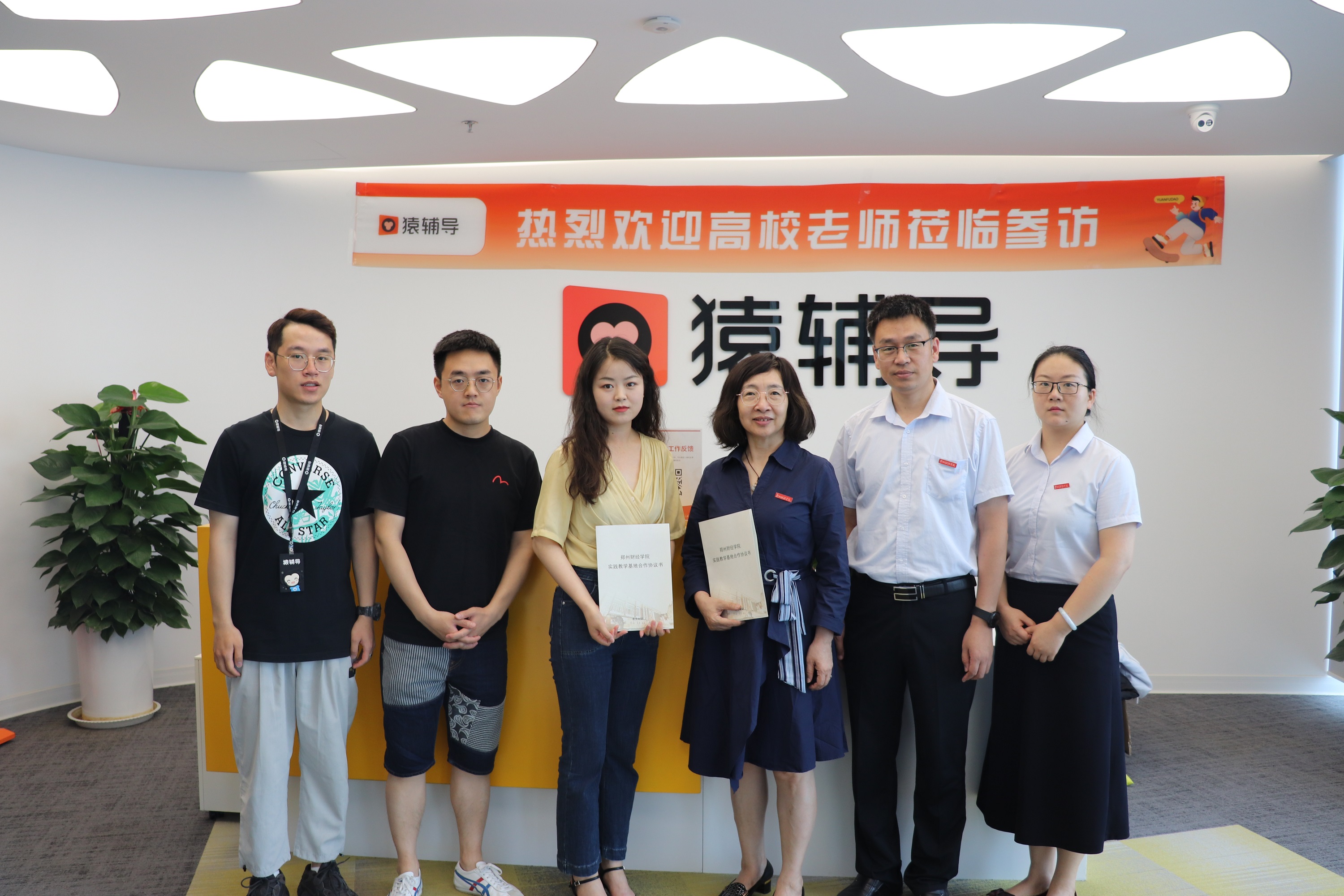 在猿辅导工作人员的接待讲解下,学院考察人员实地参观了公司环境,了解了企业文化、员工工作时长、教学模式等。双方随后在会议室围绕学生实习工作进行了深入交流讨论。