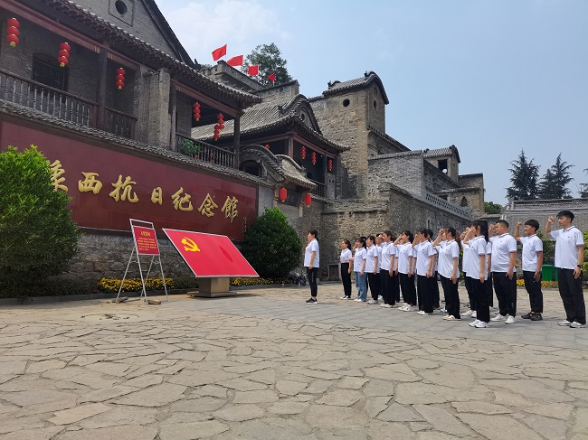 入党宣誓仪式结束后,在讲解员的带领下,全体党员师生逐一参观了柏茂庄园的各个展厅,了解了河南战役中八路军挺进豫西,开辟抗日根据地,控制中原,阻敌西进的艰难历程,以及豫西抗日根据地开辟、巩固、发展的艰苦历程;体会到豫西军民在这场抗日斗争中,迎难而上、前赴后继的拼搏精神,视死如归、保家卫国的牺牲精神,跃马疆场、慷慨赴死的奉献精神。