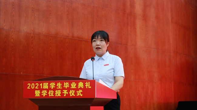 学院党总支书记温毓敏宣读《河南省教育厅关于表彰2021年河南省优秀应届大中专毕业生的决定》和《威廉希尔足球官网关于表彰2021年优秀应届毕业生的决定》。