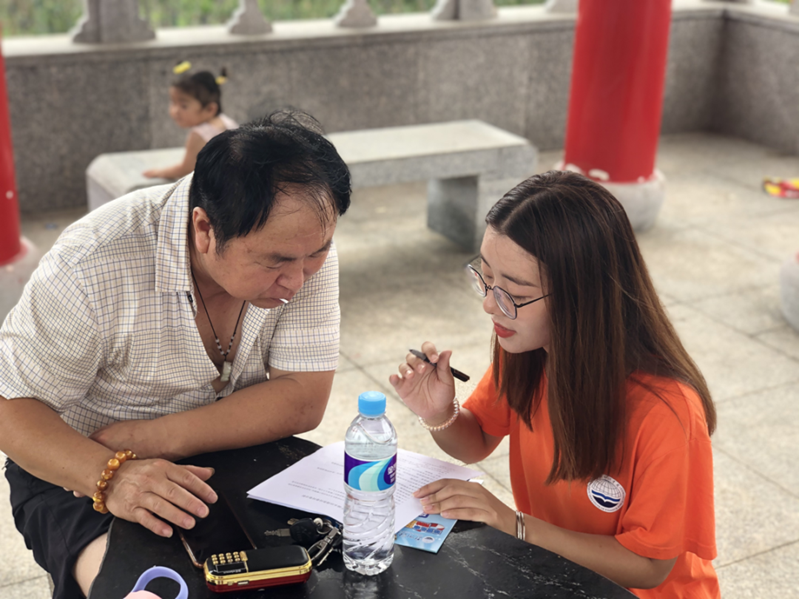 团队成员向凤鸣岛游客发放调查问卷