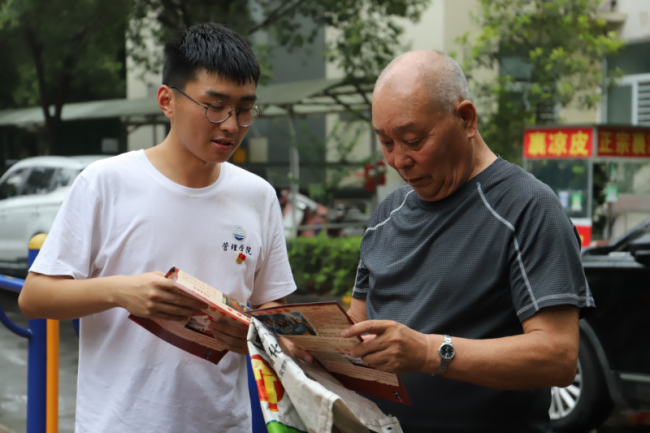 7月12日至18日,宣讲团深入驻马店、周口、郑州、南阳、新乡、中牟等地,奔赴养老院、幼儿园、党员家庭、村庄街道社区及红色教育基地,发放宣传手册和调查问卷,宣传党史知识,帮助人们了解党的发展历程,传播红色精神。