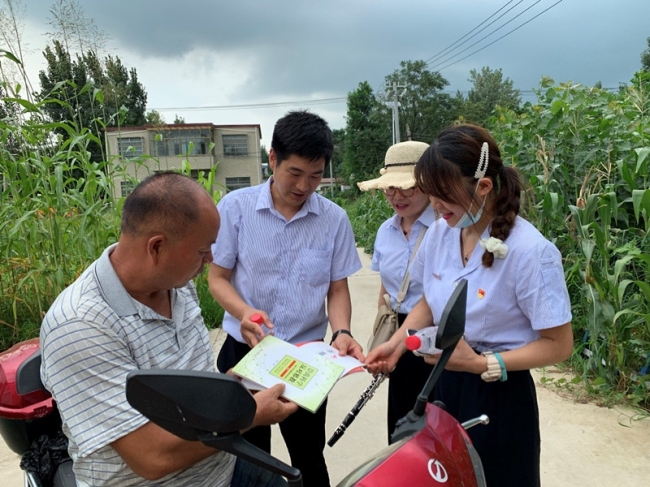 走村串户察实情,崇尚科学反邪教。骄阳似火,空气中充斥着炎热与焦躁,但丝毫阻挡不了实践团队员的热情。队员们身穿“永远跟党走 奋进新时代”的橙黄色T恤,迈着矫健的步伐,行走在田间地头、村头巷尾向村民宣传反邪教知识,还耐心地俯下身来,仔细地向小朋友讲述邪教的危害,告诫小朋友要远离邪教,使得“崇尚科学,反对邪教”的观念更加深入人心。
