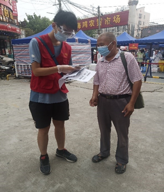 2020级软件工程专升本3班的郑登科自8月份以来,主动联系所在社区,在周口市淮阳区皇都小区参加疫情防控志愿活动。他在社区内卡口轮流值班防守,禁止非本小区的外来人员和车辆进入,帮助测量居民体温,了解居民出行原因及去向,并及时登记造册。他还积极向居民宣传疫情防控的相关知识,提醒居民做好防护工作。