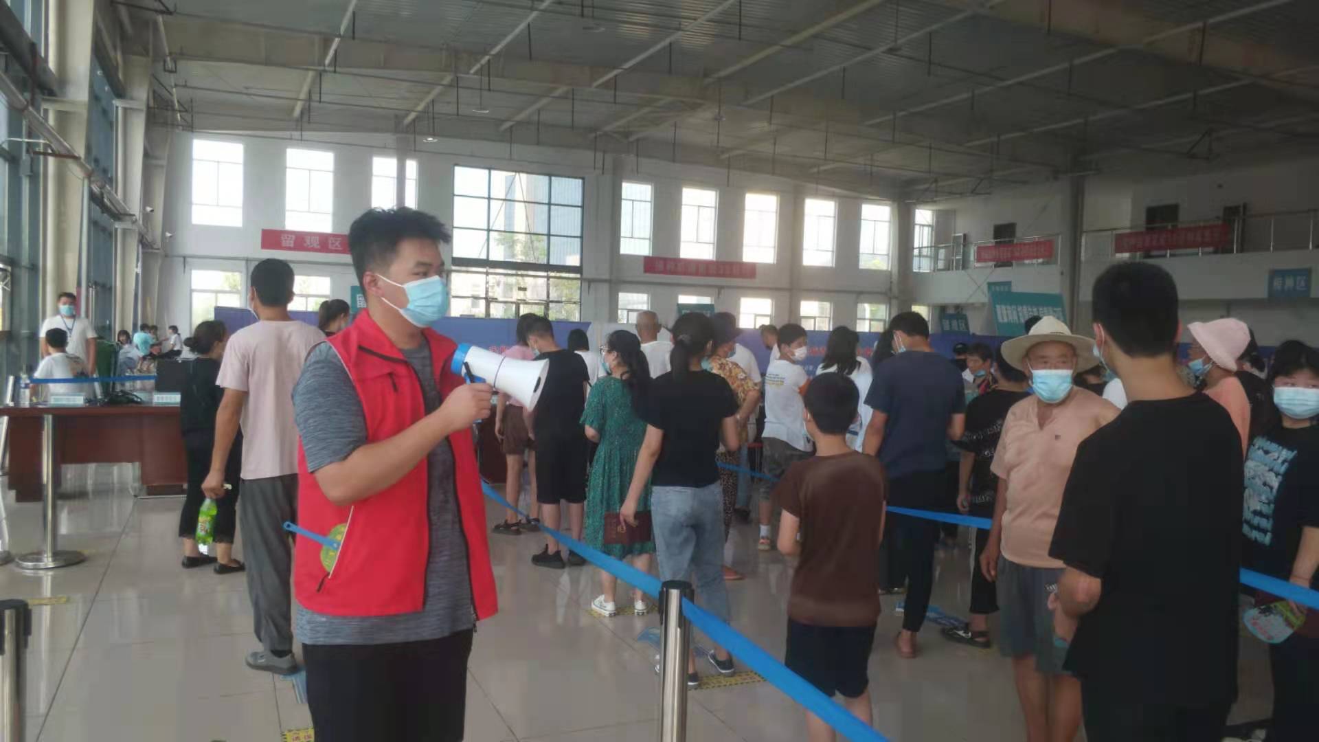 吕晓捷协助维持接种现场秩序