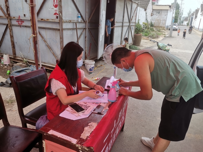 靳亚静,18级英语本5班学生,于8月10日起在平顶山市郏县渣园乡二十里铺村疫情防控服务站开展志愿服务工作,主要负责为进出村民和车辆进行信息登记、体温测量、信息核查、协助村干部完善村民接种疫苗等相关信息。通过走访了解到农村居民人口混杂,老人较多,信息统计工作非常繁琐,村民防疫意识淡薄,经常不戴口罩来回出入,且喜欢扎堆聚集,防疫难度较高。靳亚静耐心细致的向村民做好解释工作,讲解防疫知识,宣传防疫的重要性,有些村民看到志愿者在烈日下工作,为志愿者们送来饮料和零食。在此次志愿活动中,靳亚静感触良多。她认为这场疫情是她们这一代青年的成人礼,唯有正视这样的困难,在困境中汲取教训,才不辜负这样一场代价沉痛的历练,在艰苦奋斗中砥砺意志品质,在实践服务中增长过硬本领。