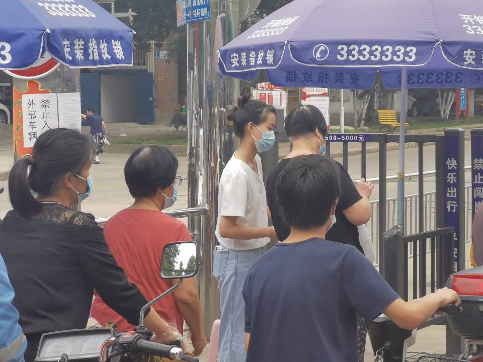 白世培在卡点测体温、查验行程码