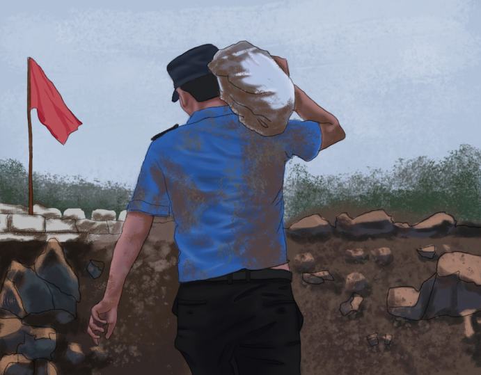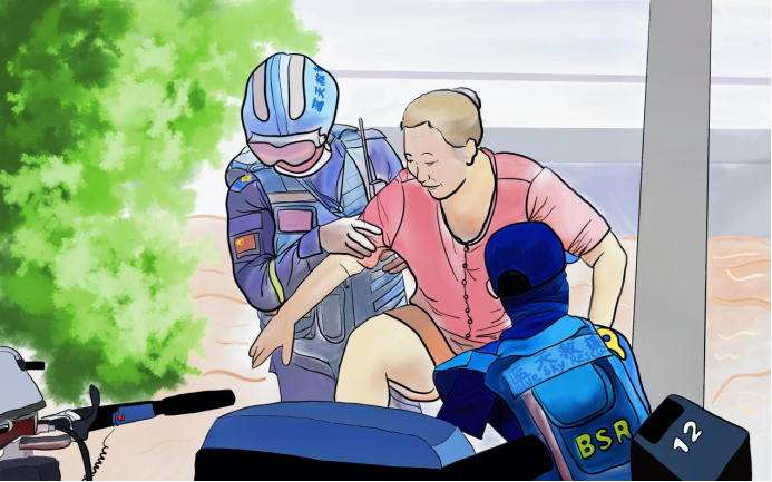 “哪有什么岁月静好,只不过是有人在负重前行”。抗洪期间,各地都涌现许多普通的“英雄”,他们中有些人也不过20岁出头,只因那一身制服,便要冲锋在前,不言苦累。“看到这张背影的照片时,我十分感动,便决定用画笔的形式记录下来。”19级视本3班尹思维说。
