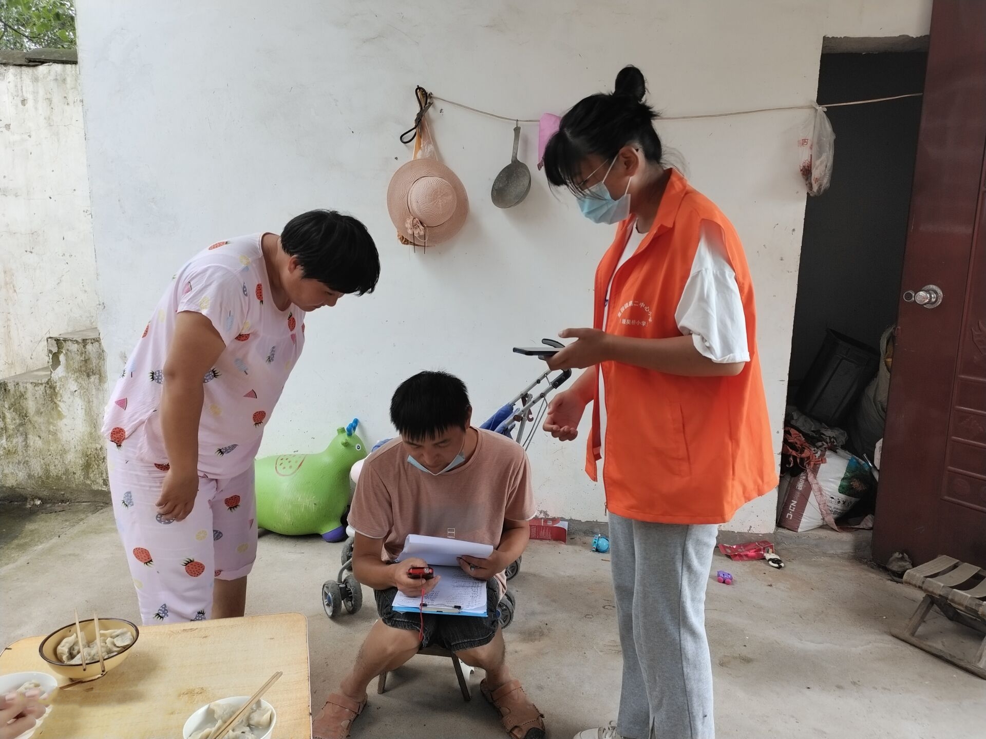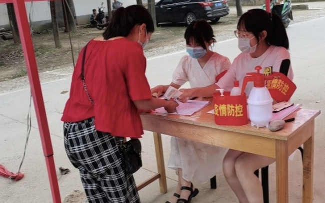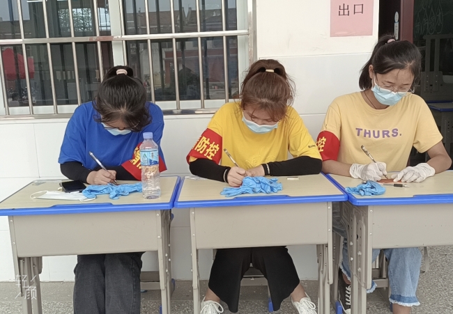 自7月份疫情反弹以来,外国语学院21级的准大一新生刘彤欣就在洛阳市宜阳县张坞镇平北村防控卡点值班。在村委会发布招募“青年志愿者”的通知后,她毫不犹豫地第一时间报名。她说:“身为一名准大学生,作为一名共青团员,我深知除了学习,对于国家、对于社会、对于家乡,我还肩负着更多的责任”。每天早上八点,她准时到达村口,做好消毒等防护工作后,坚守在卡点登记来往人员信息,测量体温。无论是酷暑天还是暴雨天,她都坚守在岗位,一遍遍地重复“出门请戴好口罩”“您好,请出示一下建康码和行程码”“我来为您测量一下体温”,无数次汗水浸湿了口罩。她说:“为了家乡的疫情防控工作,纵然再苦再累,我都觉得是值得的”。作为一名准大学生,每天值完班后,她还规划了学习时间,回家背英语单词、观看英语演讲视频。她表示,在正式开学返校之前,我会继续协助村干部做好疫情防控工作,切实增强村民的防疫意识,落实疫情防控措施,站好岗,守好责。