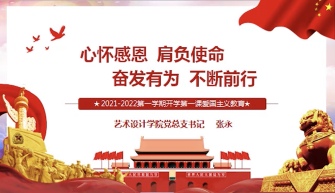 首先,由艺术设计学院党总支书记张永致开学寄语,他以《心怀感恩,肩负使命,奋发有为,不断前行》为主题,感谢汛情和疫情中党和国家的正确领导,以及为我们提供帮助和支援的爱心人士。号召同学们要常怀感恩之心、做懂得感恩之人。并引用习近平总书记对青年一代提出的四点希望,与学院青年教师和同学们共勉。一是要爱国,忠于祖国,忠于人民。二是要励志,立鸿鹄志,做奋斗者。三是要求真,求真学问,练真本领。要通过学习知识,掌握事物发展规律,通晓天下道理,丰富学识,增长见识。四是要力行,知行合一,做实干家。每一项事业,不论大小,都是靠脚踏实地、一点一滴干出来的。