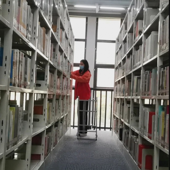 学员在图书馆整理书籍