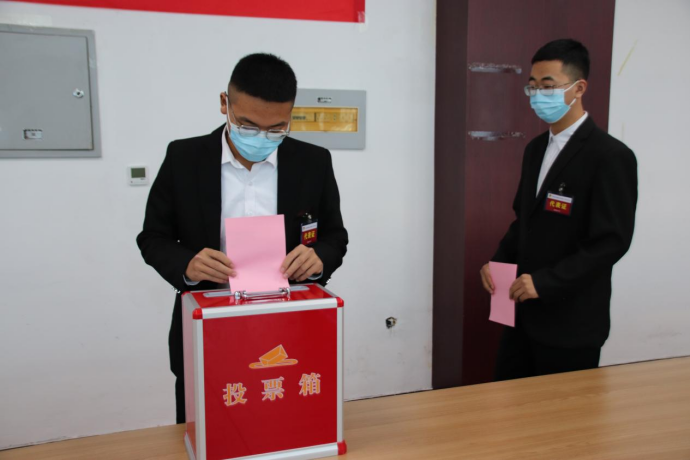 接着,智能工程学院第一次学生代表大会第二次全体会议召开,刘浩泽宣读了《大会选举办法》、学生会主席团候选人名单和监票人、计票人名单。全体学生代表现场投票产生新一届学生会主席团。最终通过不记名投票,赵孟龙、张居尧、郑阳当选为智能工程学院学生会主席团成员。