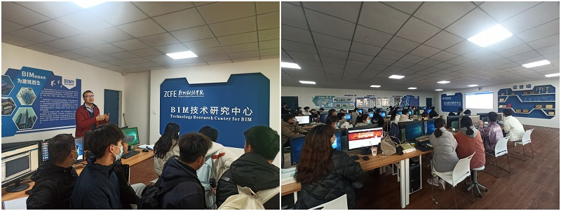 随后,魏治民总监向学院学生介绍了青矩工程顾问有限公司基本概况并结合河南省直青年人才公寓项目介绍了BIM技术应用,学生代表汇报了2021年“鲁班杯”全国高校BIM毕业设计大赛作品。最后,魏治民对土木工程学院学生BIM技术学习进行了指导。