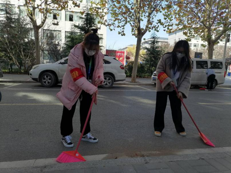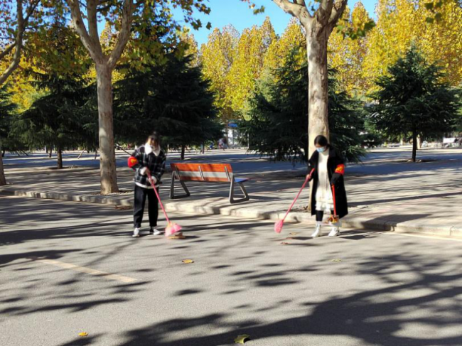 寒风凛冽,但志愿者们的热情不减,将各自负责区域中的落叶、烟头、纸片等垃圾打扫捡拾干净,不落下任何角落。五个小时,志愿者们在阳光与寒风的陪伴中默默打扫,看着自己打扫干净的道路,自豪之感油然而生,他们为郑财的寒冬装点一份温暖。值班结束后,志愿者们将打扫工具整理完毕,有序离开。