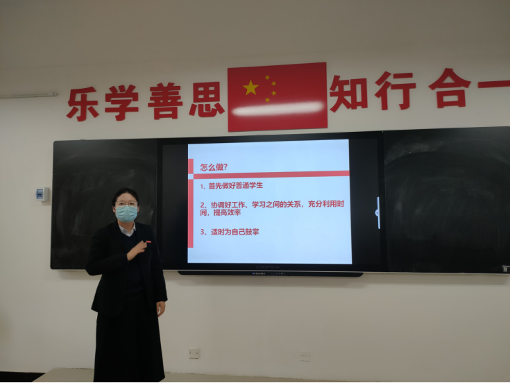 培训第二讲分为两个部分,第一部分由学院党总支副书记曹亮主讲。他用生动的案例对团干部应具备怎样的素质进行了细致讲解。从不忘初心、团结协作、苦练本领、不断创新四个方面指导团干部发挥青春力量,并传授了团干部一些工作经验和学习方法。他明确提出团干部应具备正直诚信、自强不息、敢于担当等优秀品质,不断提高自身综合素质,不辜负党和国家的期望。第二部分由学院团总支书记崔灿主讲。她以团干部应如何快乐学习与工作为主题,讲授了团干部如何面对学习和工作中出现的压力。并教育广大团干部想要开展好团工作就必须从各方面锻炼自己,努力学习,以身作则,率先垂范。在学习工作中遇到困难与阻碍不能退缩,要学会用科学的方法调节情绪,激流勇进、迎难而上,化压力为动力,以更好的精神面貌为同学们做好优质服务,为集体贡献力量。