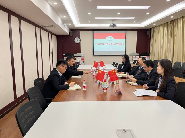 12月16日下午,威廉希尔官网校地合作处处长陈明灿一行三人到会计学院开展调研工作。会计学院院长穆大常、副院长卫强、王娟及会计学院校地合作处联络员翁世静老师参加此次座谈会。