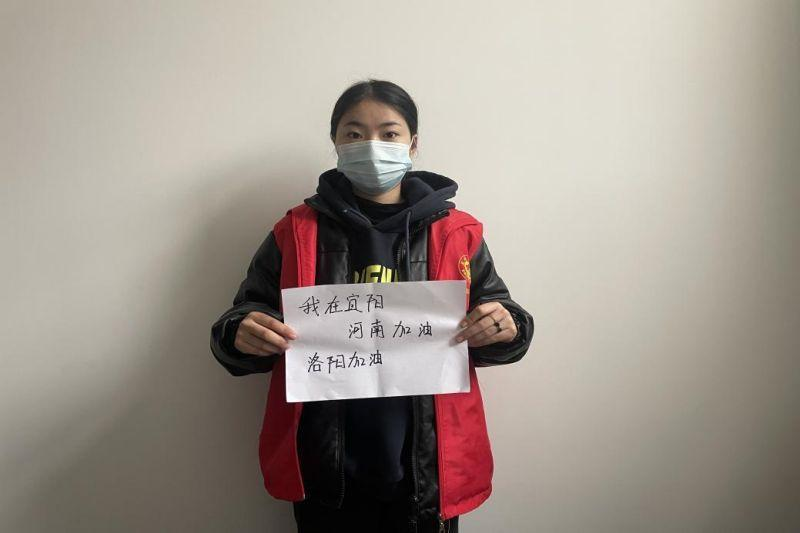 19注会4班的崔格格在洛阳市宜阳县参加防疫志愿工作。她说:“疫情当前,人民群众众志成城、同心协力,构筑一座坚实的防疫战斗堡垒。听到招募志愿者的消息,我第一时间报名参加,在社区帮助群众登记信息,向亲朋好友宣传疫情防控知识。只要大家齐心协力,我相信我们一定能够战胜疫情,取得胜利!”