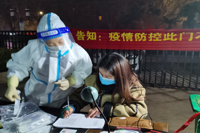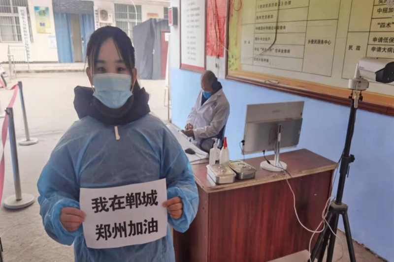 20审计本2班周桐在郑州市荥阳市参加防疫志愿工作。她说:“我志愿加入防疫志愿队伍中,积极协助开展核酸检测扫码登记及体温检测等工作。虽然我做的都是一些细微的工作,但是千千万万个志愿者充满爱心的小举动定能汇聚成战胜疫情的强大力量。聚是一团火,散是满天星。这是一场没有硝烟的战争,让我们团结起来,同舟共济,共同抗击疫情!”