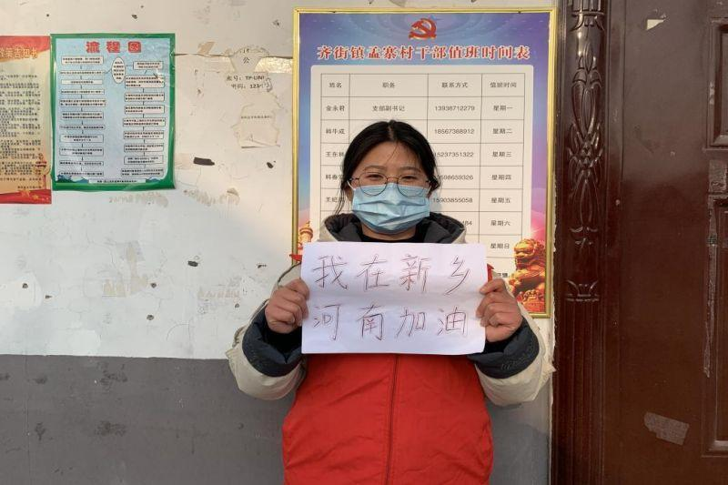 20注会1班的邱甜甜在驻马店市汝南县韩庄镇林庄大队参加防疫志愿工作,为乡村防疫贡献力量。她说:“临近年关,防疫尤为重要。我很高兴能为我的家乡做一些力所能及的事情。凛冽的寒风并不能吹灭防疫工作者和志愿者们的热情,团结一心、众志成城,相信我们一定能够打赢这场疫情阻击战!”