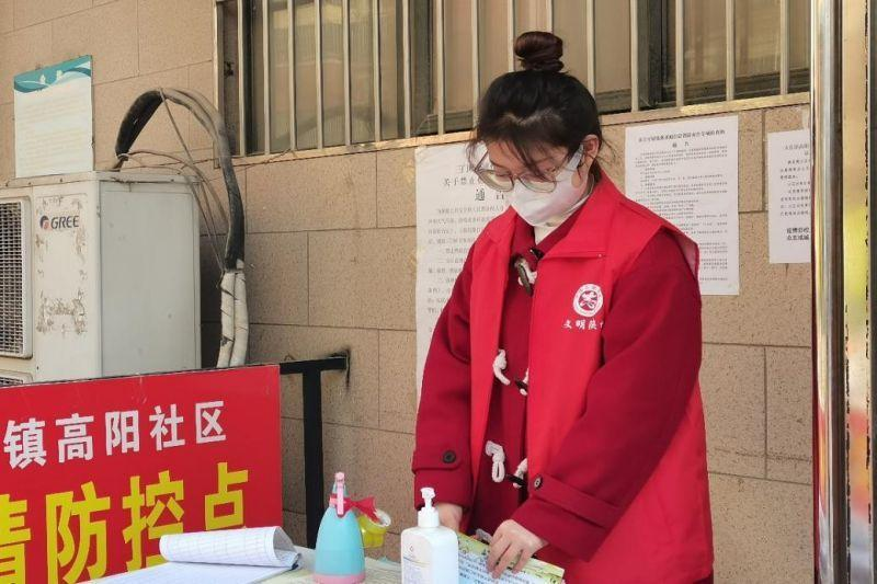 20审计本2班张弛在鹤壁市浚县参加防疫志愿工作。她说:“这是我第二次做疫情防控志愿者,疫情防控是我们每个人的责任,国家和社区关爱培养我们,我们也应当有所回馈,助力抗疫,展现当代青春力量。面对新冠肺炎疫情卷土重来,作为一名入党积极分子,我会一直在前线坚守!”