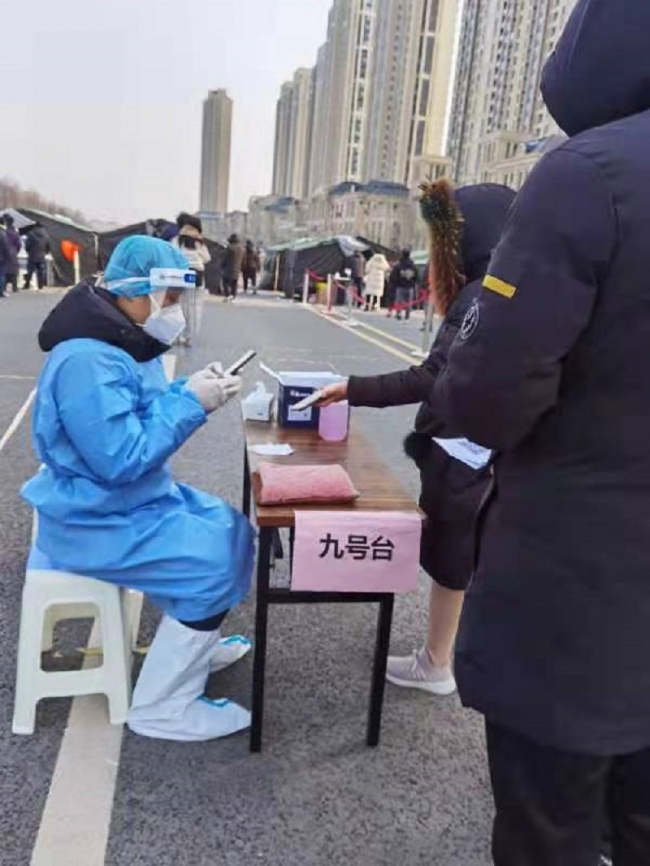 王空前说:“在核酸检测现场,天气很寒冷,医护人员穿着防护服,工作真的很不容易,我深刻体会到他们的无私付出,也感受到人间暖暖的情谊。但愿疫情随风去,岁月静好人安宁。”
