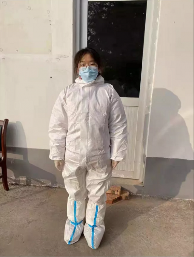 20造价本3班牛艳如同学身穿防护服进行志愿服务