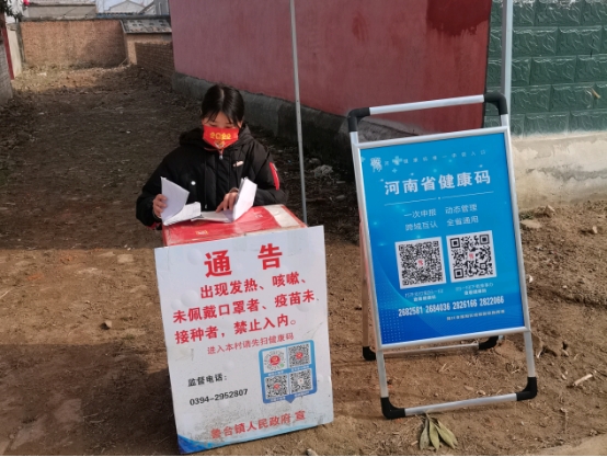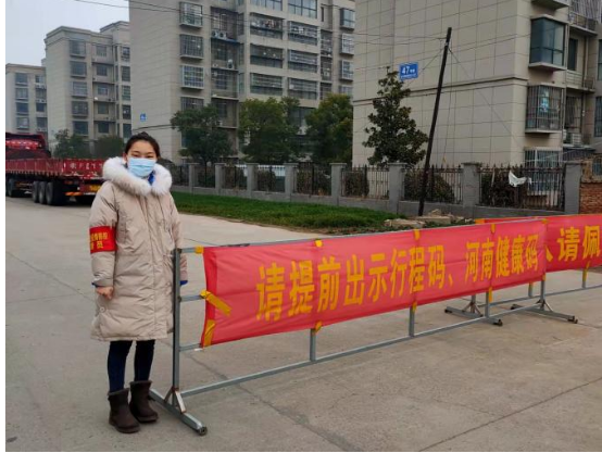 2020级金融学本科4班毋晓荣积极响应上级指示,报名了当地社区防疫志愿服务活动,她的工作是在街道路口设卡排查,对外来车辆和人员进行劝返,对社区来往车辆进行登记,宣传防控知识。她说:“以星火之名燃青春之光,相信在党和政府的正确领导与每位防疫人员的共同努力下,我们一定能够再次成功战胜疫情。”