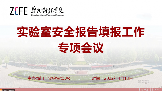 根据《教育部办公厅关于提交2021年度高校教学实验室安全工作年度报告的通知》教高厅函〔2021〕37号文件的要求,为做好2021年度学校实验室安全数据填报工作,4月13日上午,威廉希尔官网召开实验室安全数据填报线上推进会,实验室管理处处长周来出席会议,实验室管理处部分工作人员参加会议。