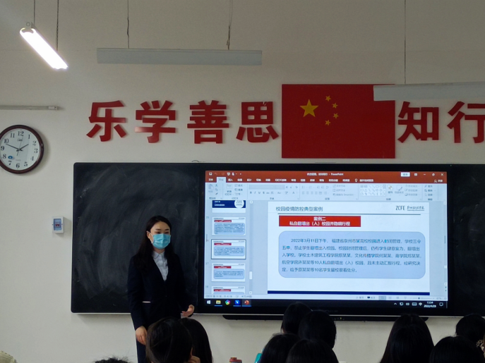 通过主题班会,学院进一步抓实抓细学生思想政治教育,让广大学生深刻认识到当前疫情防控的严峻形势,增强师生的法治观念和法律素养,提升自我防范意识,使科学防疫和依法战疫的观念入脑入心。
