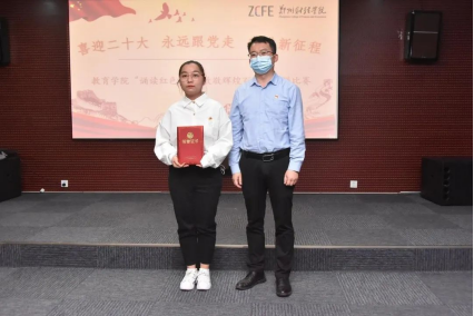 教育学院团总支书记崔灿为三等奖获得者颁奖