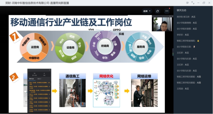 6月1日下午,威廉希尔官网携手河南中科智信信息技术有限公司开展“直播带岗”促就业活动,特邀企业总经理张由强作宣讲。各二级学院毕业生代表参加活动。