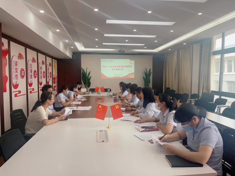 为加强辅导员队伍建设、明确辅导员工作职责、优化辅导员考评体系、提升辅导员履职能力、切实加强学院学工队伍建设、全面推进2022年学生工作再上新高度,7月6日上午,管理学院在德信楼608会议室组织开展了2021—2022学年辅导员工作考核评议会。学院党总支书记袁清、教学副院长胡久贵、各教研室主任及全体辅导员参会。会议由党总支副书记路艳娜主持。