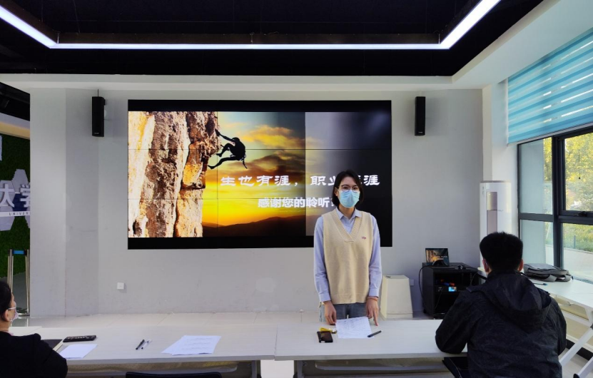 决赛开始前,孟倩倩激励同学们要尽早地进行职业规划,剖析自身、了解职业、认识社会,明确现在努力的方向及未来发展的目标,在就业时有的放矢、提高人岗匹配度和就职成功率。