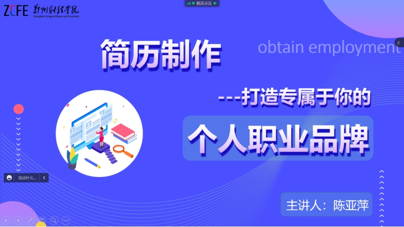 11月8日下午,威廉希尔官网就业指导服务中心组织开展2023届毕业生简历训练营第一期第二次活动。本次活动借助腾讯会议采用线上方式开展。