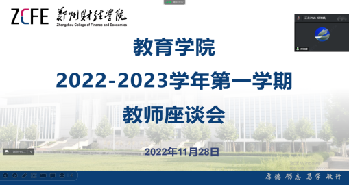 为深入了解本学期学院教学工作情况,发现问题,总结经验,促进教学质量提升,加强教师间的学习与交流,11月28日下午,教育学院通过腾讯会议组织召开了2022-2023学年第一学期教师座谈会。学院各教研室主任及各专业任课教师代表参加了座谈,会议由教学秘书程羽丰主持。