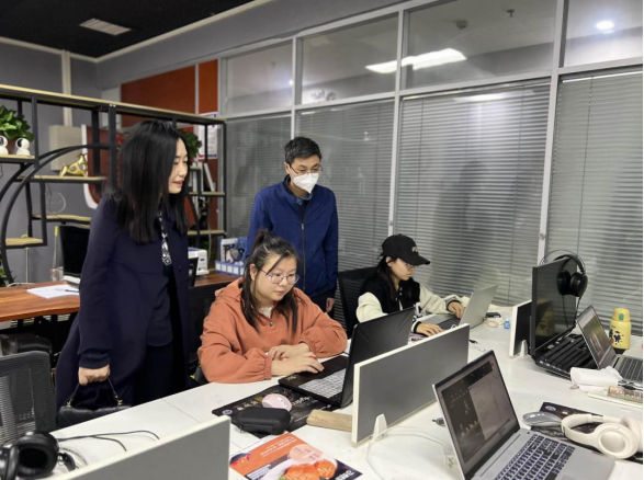 文化与传媒学院院长夏丽华一行实地考察了酷乐传媒的办公及学生实习工作环境,了解企业的岗位用人需求。院长夏丽华简要介绍了文化与传媒学院发展概况及人才培养目标、专业设置、学生实习就业等情况,与酷乐传媒负责人王鹏针对广告学专业学生的实习和就业问题交换了意见,双方就实习生培养、学生职业发展、产学研合作等相关话题进行了深入沟通,并探讨在未来建立更加长效、稳固、深层的合作关系,更好地发挥院企合作、协同育人作用。