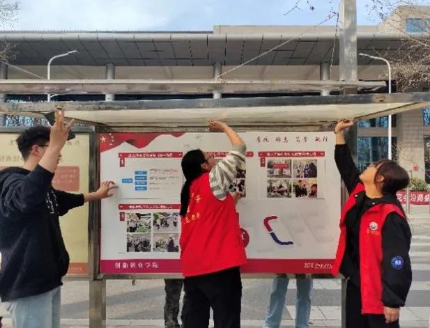 志愿者们清理宣传栏