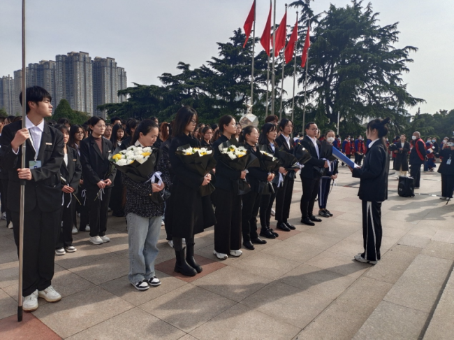 学生代表代莹、赵晨艺分别进行发言,深刻缅怀革命烈士的丰功伟绩,并表示将坚定不移跟党走,踔厉奋发,笃行不怠。