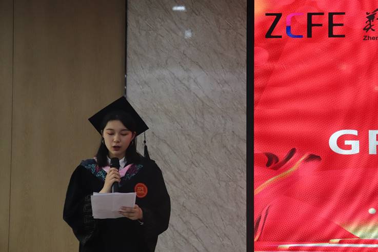 毕业生代表郭储宇、在校生代表李苗慧、教师代表张玉杰逐一发言,他们分别以学成者的身份向母校表示感恩、从旁观者的视角诉说对未来的美好愿景、在教育者的殷切期盼中向毕业生们表达最真挚的祝愿。