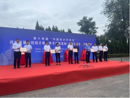 登封市告成镇领导、统计局领导等为四所高校教授颁发聘书,并为“统计教育教学实践基地”揭牌。