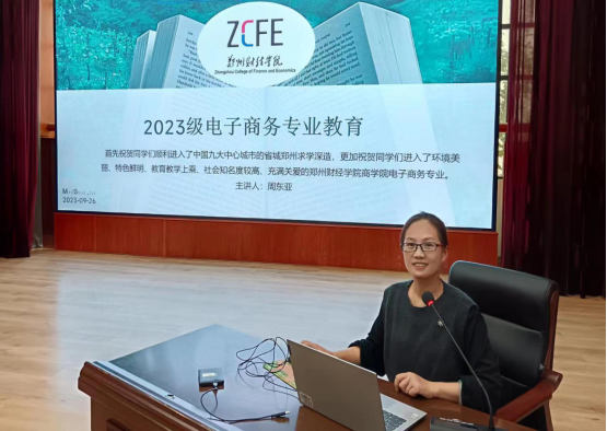 电子商务专业教研室主任周东亚副教授,从专业基本情况和学生培养方案两方面为切入点,为2023级新生详细介绍了校情、学情。随后为新生讲解了未来5年内的电商发展趋势以及专业师资力量、电商专业特色实践教学体系,并突出介绍了电子商务专业围绕“应用型”办学定位,注重技能人才培养的突出成果,鼓励新生入学后利用好学校提供的平台刻苦学习,实现目标,使学生对电商专业人才培养体系有了系统认知。