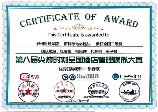 管理学院学子在第八届“尖烽时刻”全国酒店管理模拟大赛中荣获佳绩