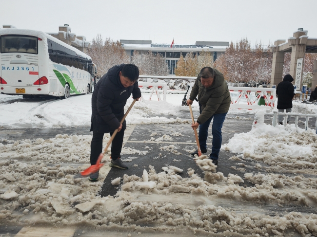 凝心聚力扫积雪,保障服务暖人心——保卫处开展校园除雪行动