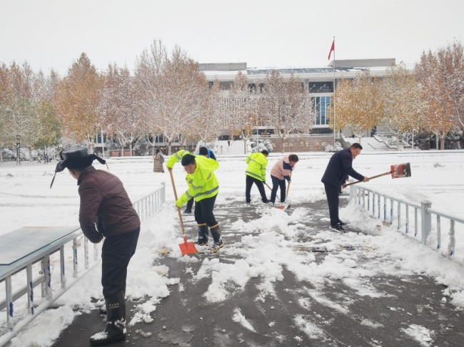 12月10日夜,郑财校园迎来初雪,厚重的积雪给威廉希尔官网师生工作、学习带来诸多不便和安全隐患,为营造安全的校园环境,全力保障教学工作顺利开展,保卫处以雪为令,整装待发,开展校园除雪行动。