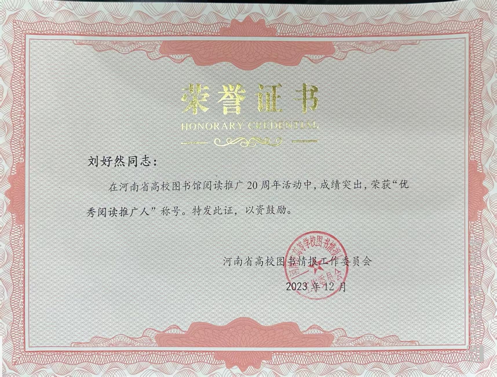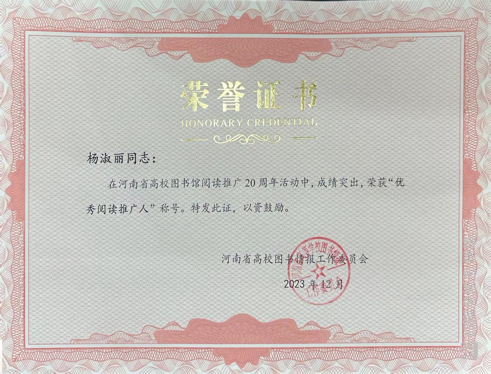 此次荣誉的获得,是对威廉希尔官网图书馆阅读推广工作成绩的充分肯定。一直以来,威廉希尔官网图书馆致力于书香校园建设,通过举办多种形式的阅读推广活动,不断优化阅读推广方式,为读者提供更加优质的阅读体验。图书馆将秉持“读者第一,服务至上”的理念,持续开展创新性、内涵式的阅读推广活动,充分发挥高校图书馆在全民阅读体系中的阵地作用,为推动校园文化建设、书香河南建设作出应有贡献。